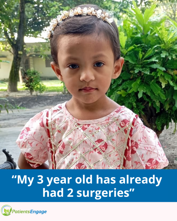 My daughter is 3 years old now, and in those three years, challenges never remained the same. The needs and the requirements kept changing. From 1 to 3.5 months, feeding was a constant challenge. Each feed ranged from 15 to 30 ml, whereas a normal baby drinks 150-200ml. Poor feeding resulted in poor weight gain, making her a very high risk case from the very day she was diagnosed. But that was the physical part of it. The mental load was on a different level, being rejected from every hospital for surgery, high risk case being the reason why no one wanted to operate on her. Some suggested to just let her live as long as she does without a surgery. The words kept ringing in my ears as I cradled my daughter who was too small to fight such a big war...